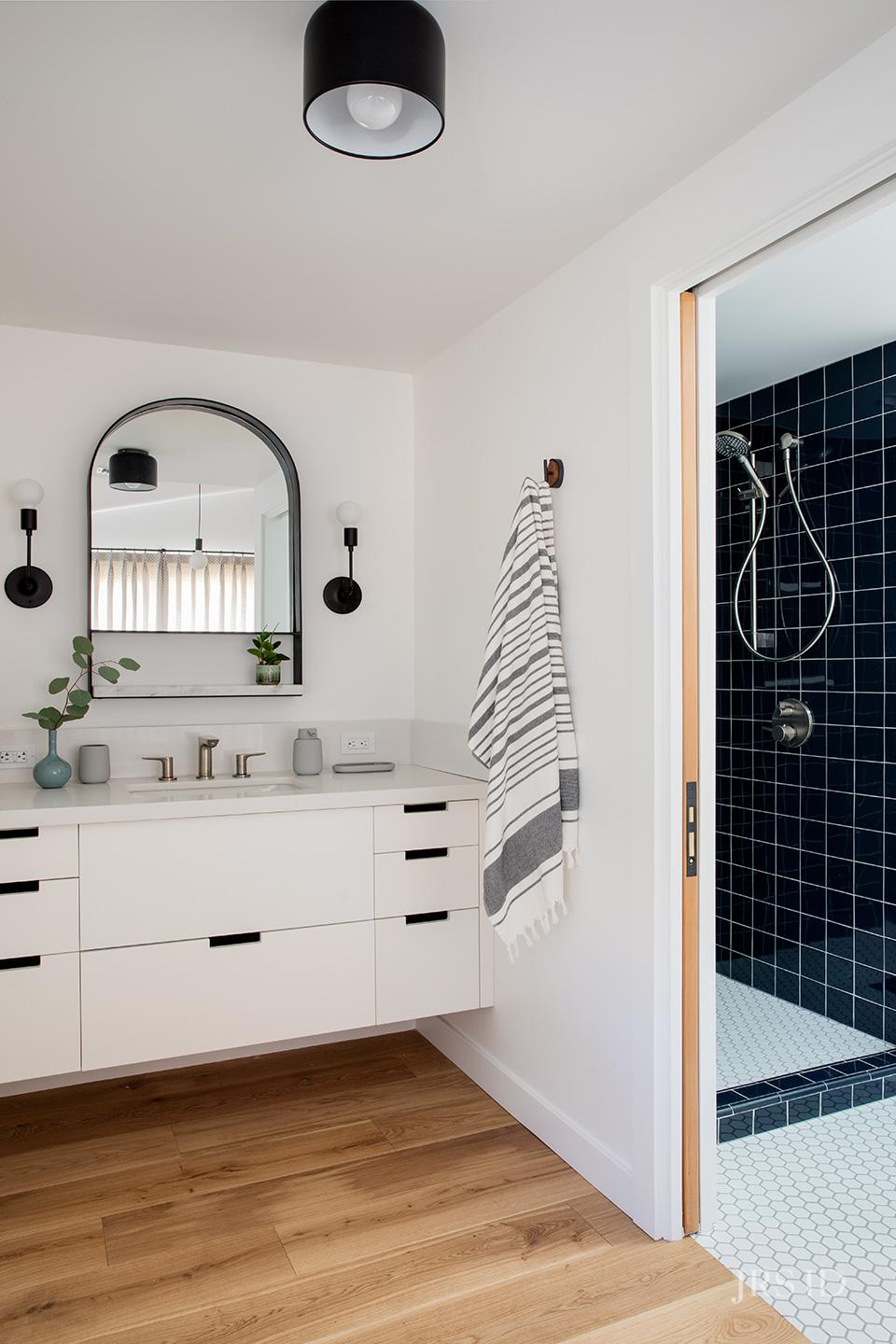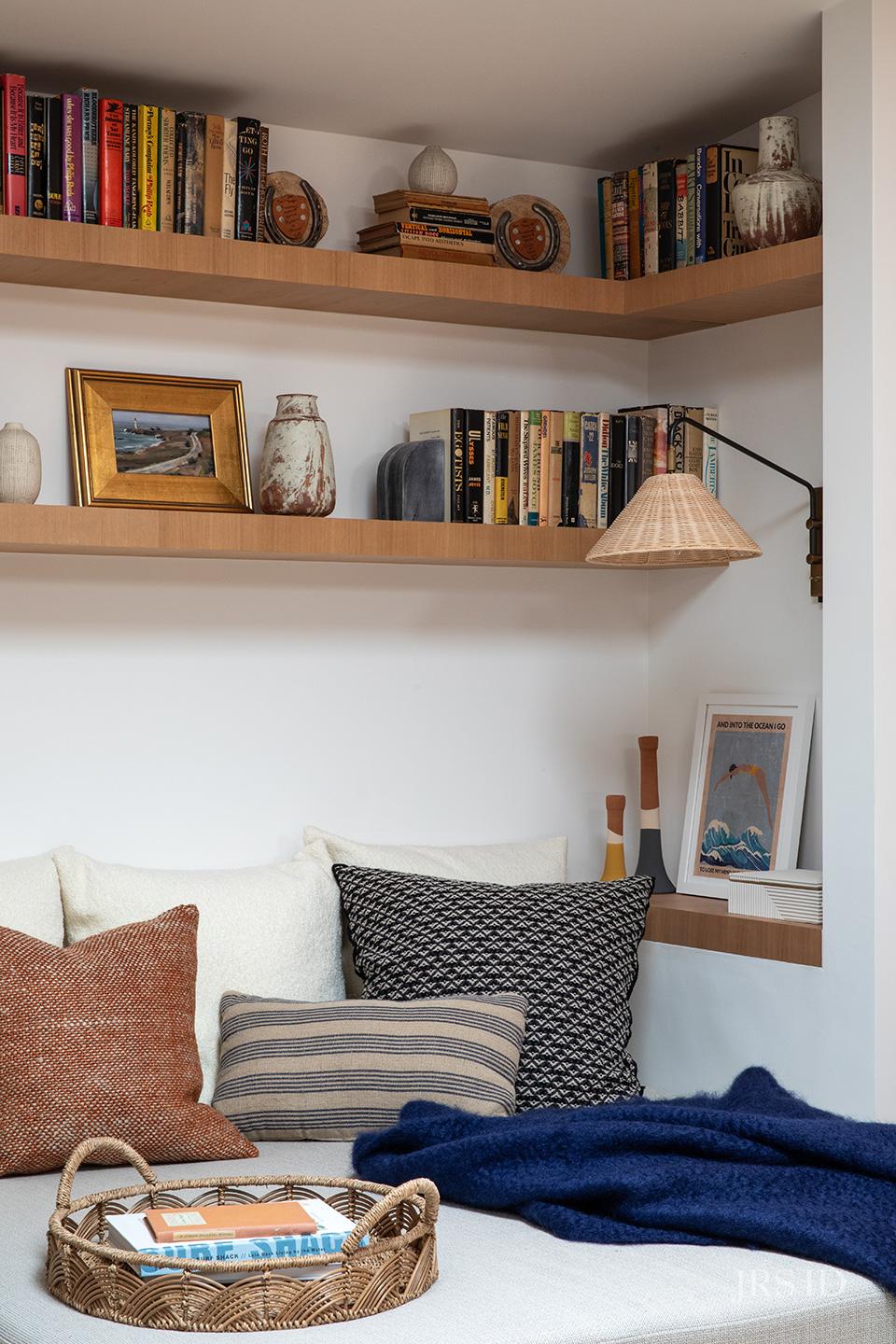 Complete renovation of second home beach house for surf weekends, family getaways and entertaining. Color and texture combine to create a cozy and welcoming environment for this book-loving surfer meets professor family.