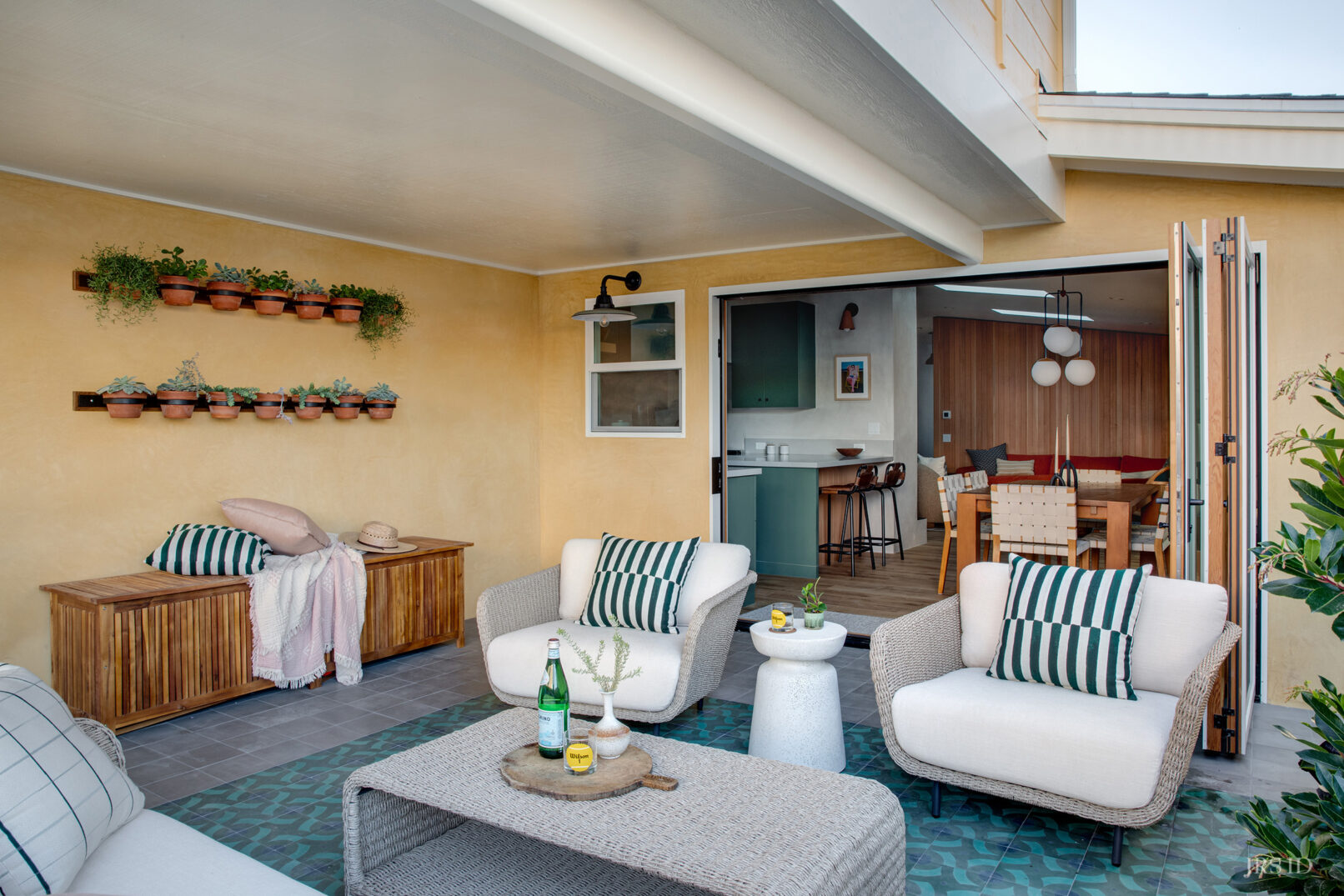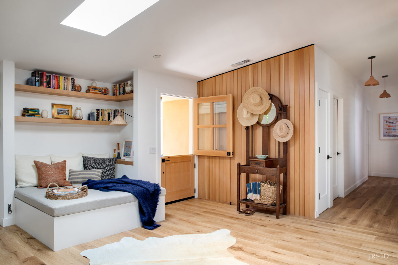 Complete renovation of second home beach house for surf weekends, family getaways and entertaining. Color and texture combine to create a cozy and welcoming environment for this book-loving surfer meets professor family.